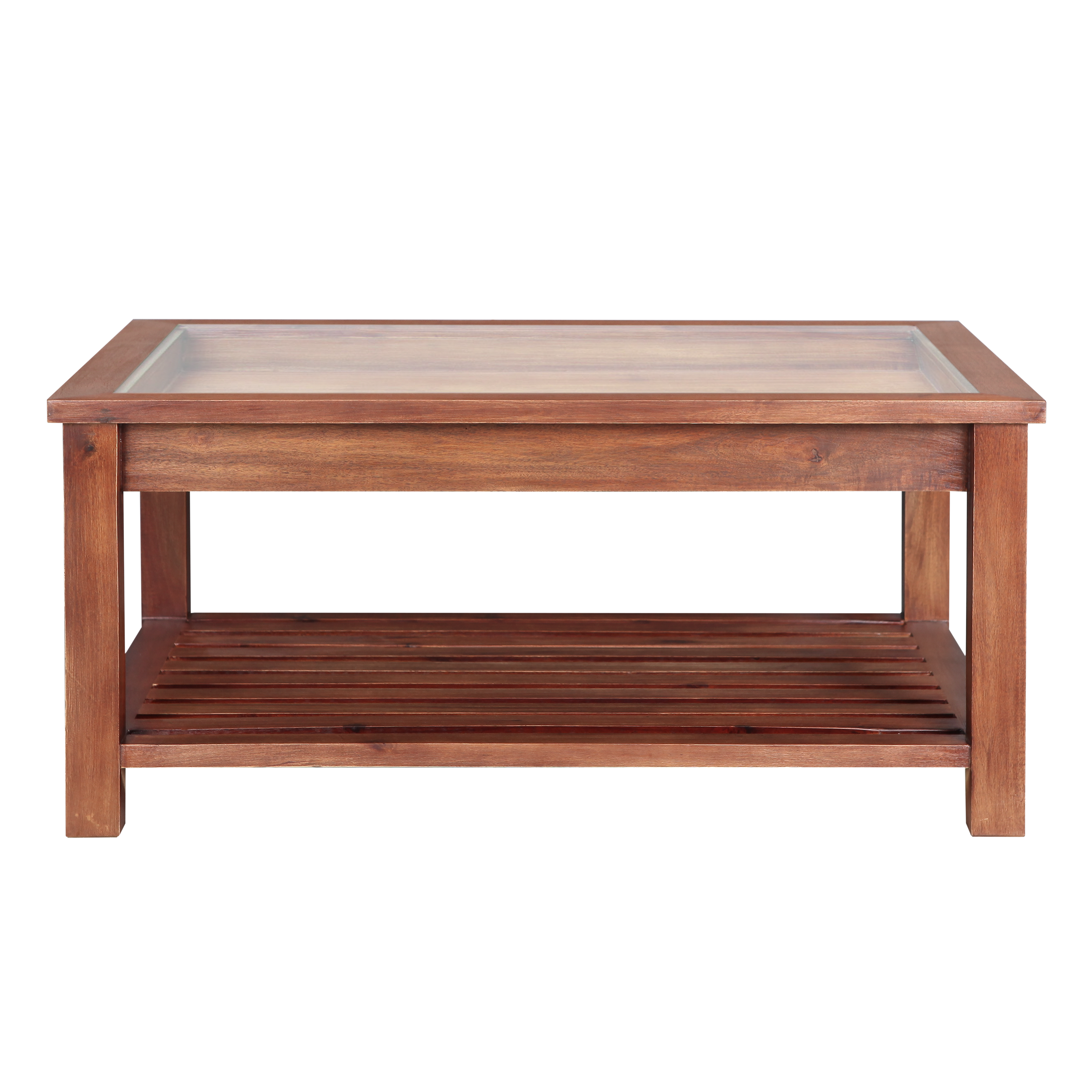 Complete your living room with this BOLTON Collection Coffee Table from Decosy Original Studio. Constructed of solid acacia this coffee table features a distressed glass top, and one lower wood shelf to house books, magazines, throws, extra pillows and more.