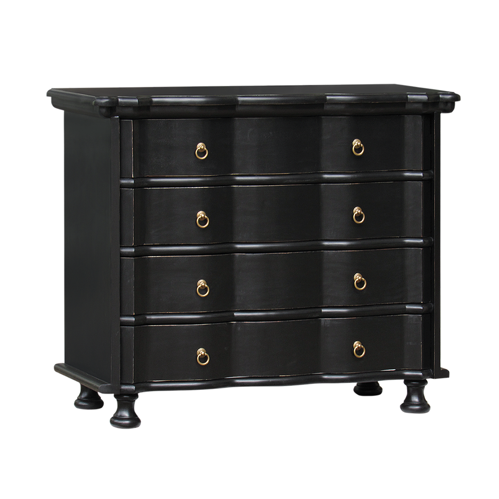 Keep your wardrobe clean, tidy and uncomplicated with this four-drawer chest from the ORLEANS Collection. Constructed of solid acacia, this sturdy little number features a tray-style top to keep your jewelry, perfumes colognes and more conveniently at your fingertips and free from sliding off the edge. Four drawers will provide ample storage for all of your folded essentials!