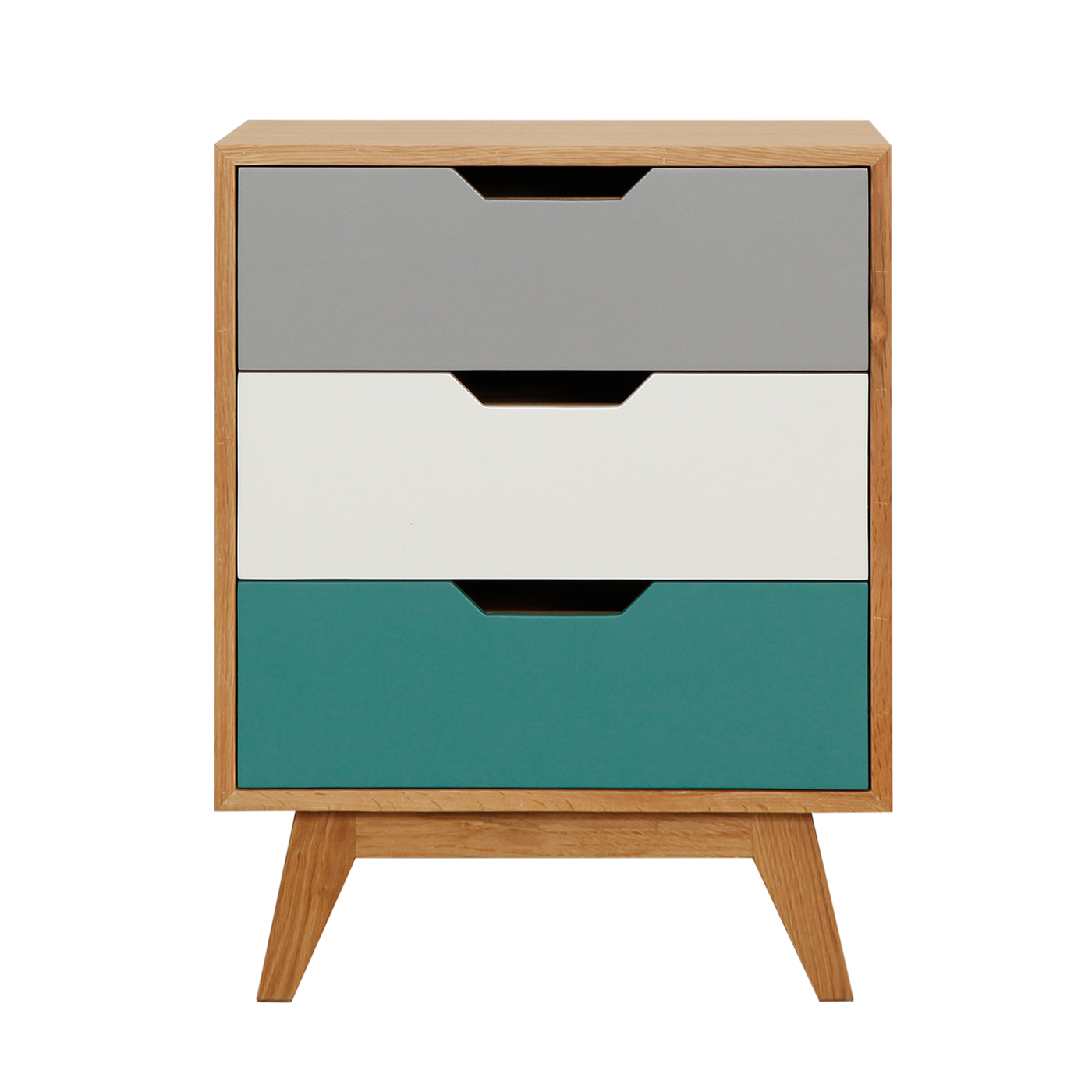 A bed feels lost without a bedside table. Take this one with its three drawers. It has been designed to stand at a height that works for beds high and low. It is also slim to help it fit into narrow spaces. It provides a compact surface for an alarm clock and book. And it has a trio of drawers to provide extra hiding places be it for socks or pyjamas.