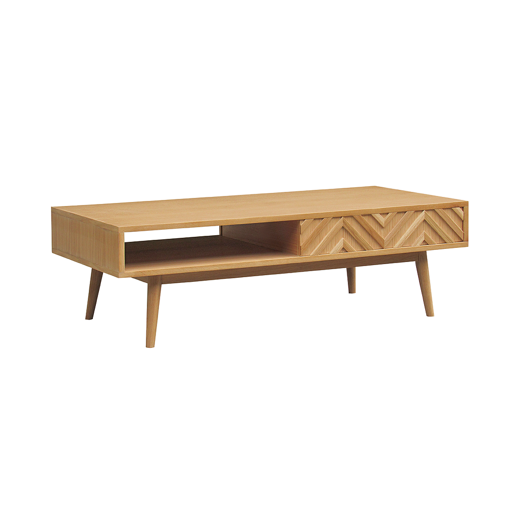 Minimalist design that packs a major style punch, the PORTO Collection Coffee Table adds modern appeal and function to your living space. Boasting clean lines, the rectangular top provides ample space for decorative accents such as a styled tray or a stack of curated books. The slightly angled legs keep the look airy while adding mid-century modern appeal to your current aesthetic. Add storage space and a drawer on the lower level, and you have the perfect piece of furniture for your living room!
