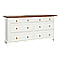 This large, seven-drawer chest of drawers is a stylish option for storing folded clothes and bedding in the bedroom, but it could serve just as well as a sideboard in the living room or dining area. It has three small drawers and four larger drawers beneath. It is made from acacia wood. Each drawer has a brass handle.