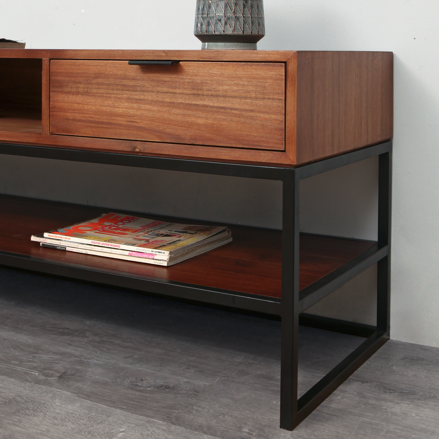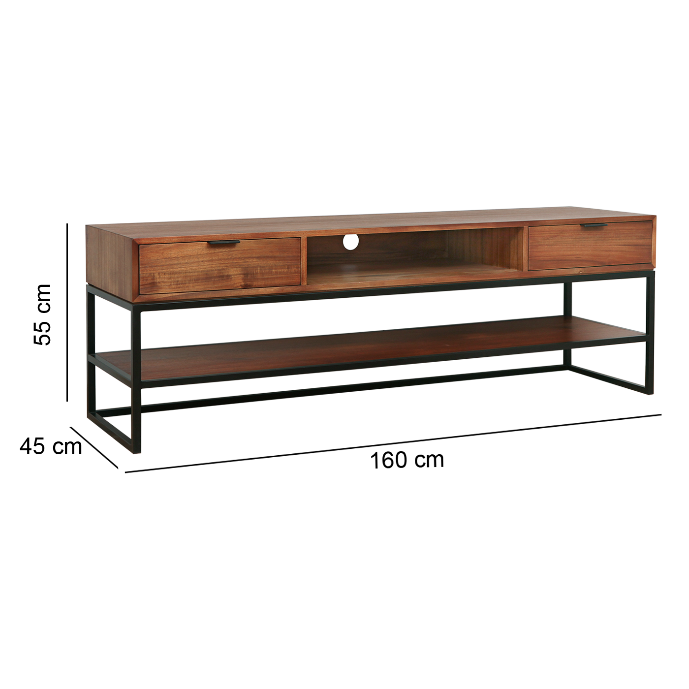 With the HARPA Collection TV stand, you can create a relaxed and pleasant atmosphere in the midst of your home. Use it for your flat screen and enjoy a binge-watching of your favorite series in a continuous loop. For any electronics, game console and storage, this TV stand features 2 shelves and 2 drawers.