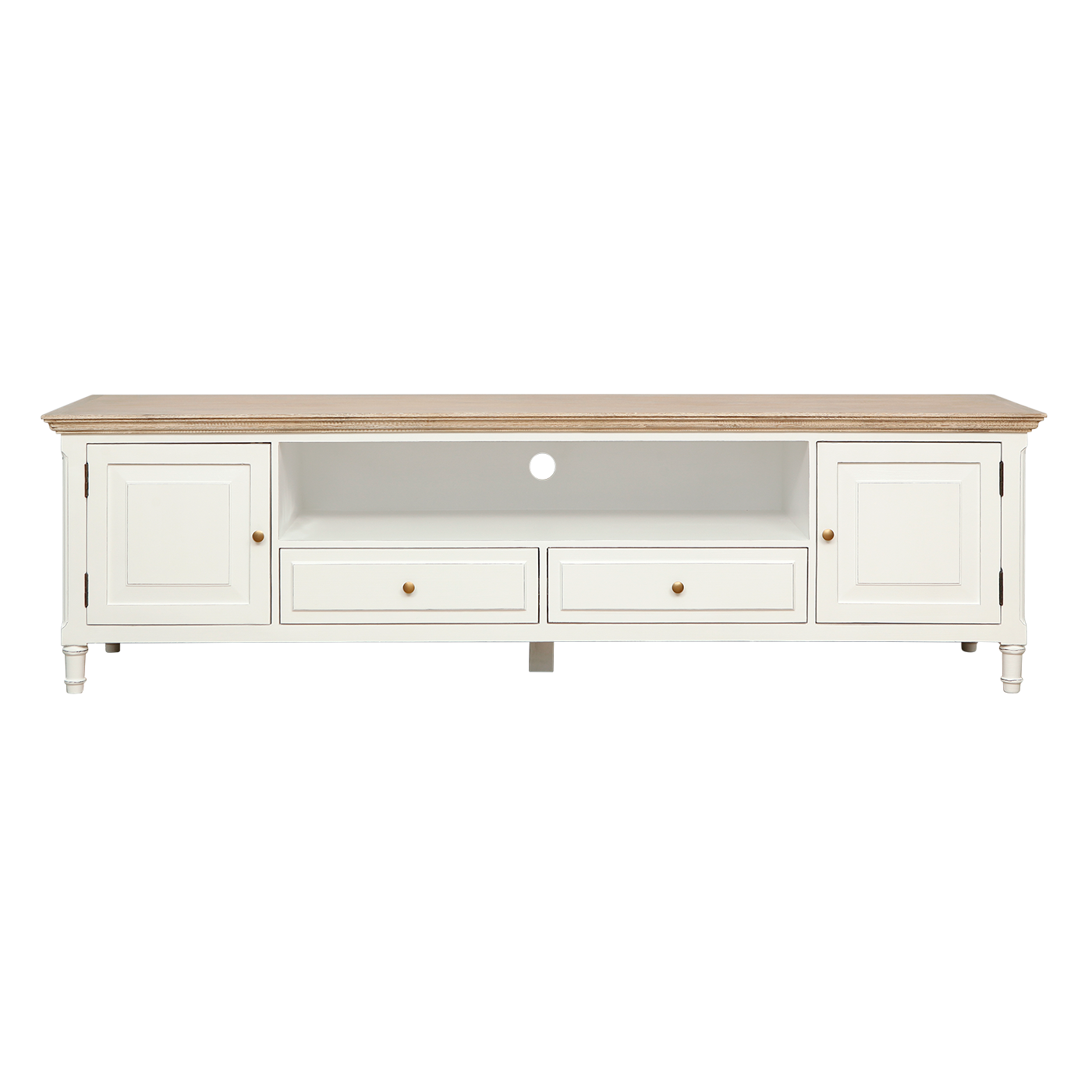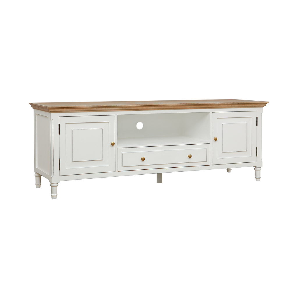 A warm finish and clean-lined silhouette give this TV stand its incomparable charm. Adding a touch of rustic-inspired design to its surroundings, the stand is also full of practicality. It features 2 cabinets with interior shelves and 1 drawer providing plenty of storage space for electronics and more. Inspire your home!
