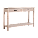 This stylish bar counter features a striking fluted wood front, adding texture and a modern, elegant design to any space. A built-in foot bar provides comfort and convenience for guests while seated. Behind the counter, you'll find three spacious drawers for organizing bar tools, utensils, or accessories, along with two large shelves that offer ample storage for bottles, glassware, and other essentials. The counter stands on rounded solid wood legs, ensuring both stability and a refined, curved aesthetic. Perfect for home bars or entertaining areas, this bar counter seamlessly blends functionality with contemporary design.