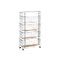 Staying organized has never been easier with the 6-Tier Vintage Silver Shelf. This tiny open shelf unit on cast simplifies your living space giving you easy access to storage. This storage unit is perfect for the kitchen, basement, garage, office or anywhere that extra storage space is needed. You can move it easily with its cast, it does not get more convenient than this!