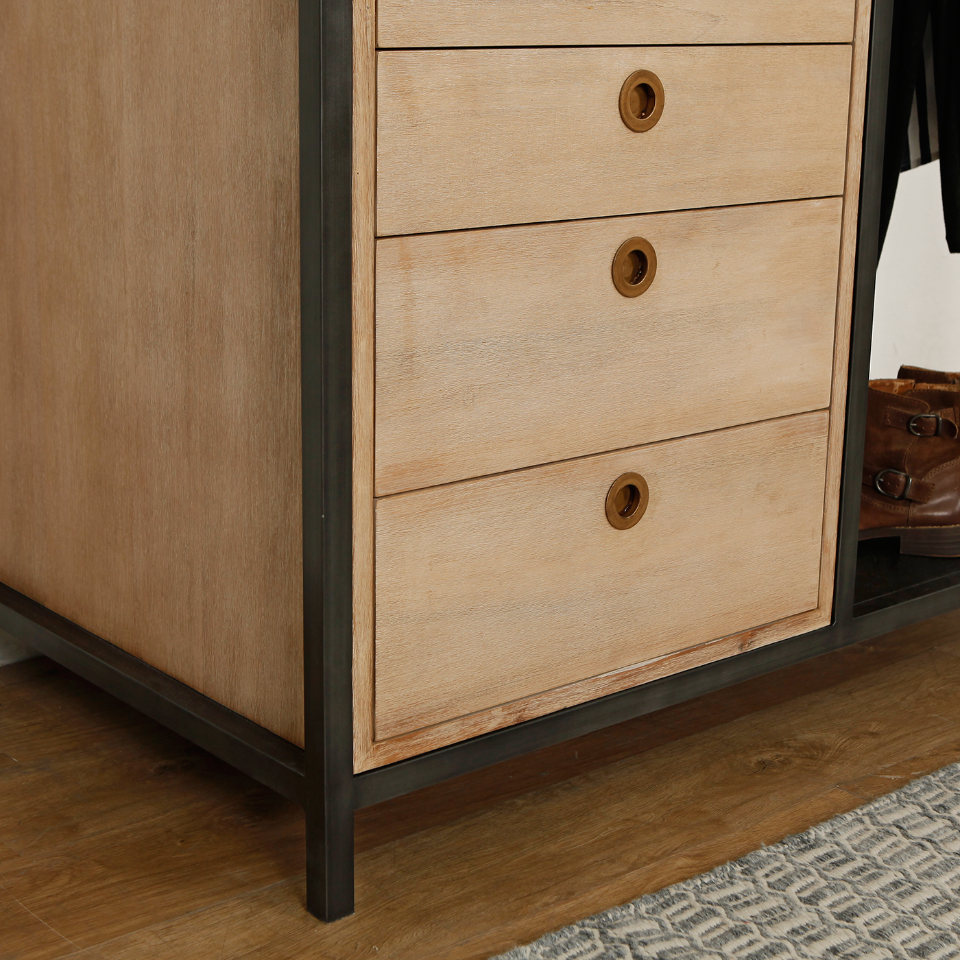This JOHNSON Wardrobe has a unique and full of character taking you in the modern home. Tubular iron frames laid with rustic wooden panels, make each item in this series individual in appearance, incorporating practical storage solutions for the home. Industrial at its best!