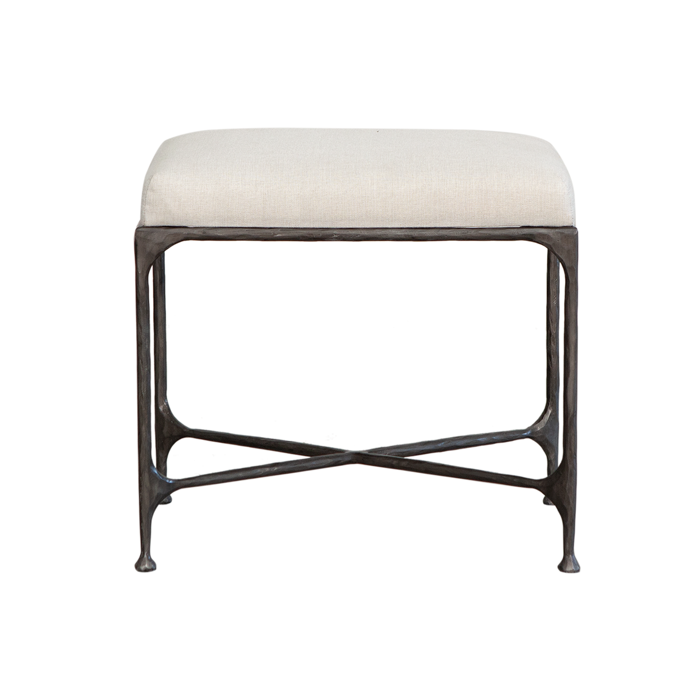 This stylish stool features an antique hammered metal base that brings a touch of vintage charm and artisanal character to any room. The textured finish adds depth and elegance, showcasing the craftsmanship of its design. Topped with a plush cushion, this stool offers both comfort and style, making it a versatile piece for extra seating or as an accent in living spaces, bedrooms, or entryways.