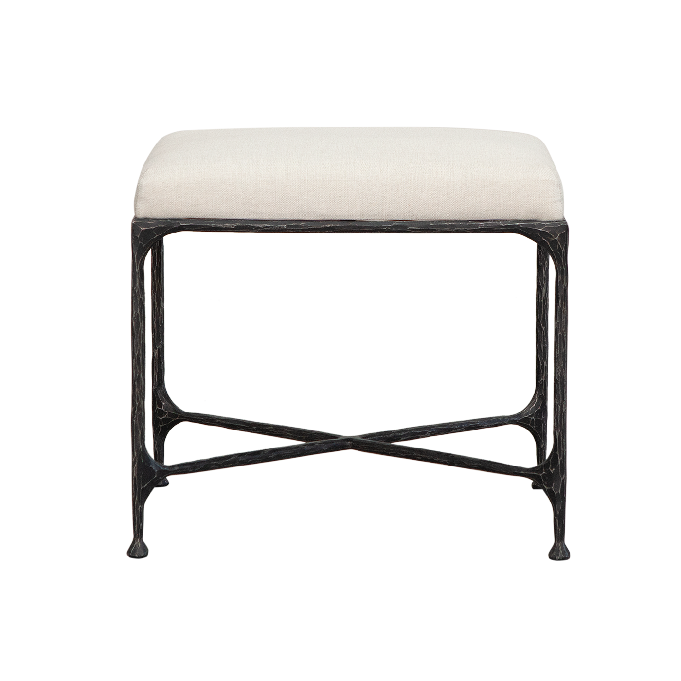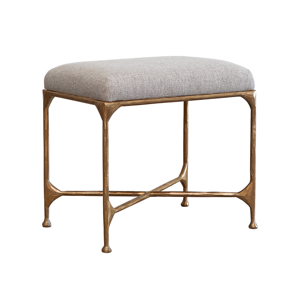 This stylish stool features an antique hammered metal base that brings a touch of vintage charm and artisanal character to any room. The textured finish adds depth and elegance, showcasing the craftsmanship of its design. Topped with a plush cushion, this stool offers both comfort and style, making it a versatile piece for extra seating or as an accent in living spaces, bedrooms, or entryways.