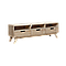 With a scandinavian and stylish design and an abundance of storage and organization options, this OSLO Collection console is the perfect addition to any entertainment area. A nod to mid-century modern design, the TV stand is as trendy as it is versatile, offering a choice of classic finishes. Pre-drilled wire management openings in the back allow for feeding cords.