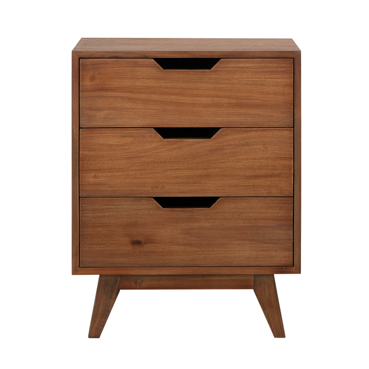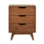 A bed feels lost without a bedside table. Take this one with its three drawers. It has been designed to stand at a height that works for beds high and low. It is also slim to help it fit into narrow spaces. It provides a compact surface for an alarm clock and book. And it has a trio of drawers to provide extra hiding places be it for socks or pyjamas.