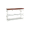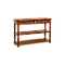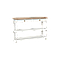 Brighten your entryway with the stylish and functional console table. This piece features two drawers and two shelves to store keys, mail, and more. Clean lines and a smooth white and washed antic finish lend a contemporary look. The plus ? Its gold-tone metal knobs on the drawers and the natural wood top that give more look to this piece. Store books on the lower shelf and add the tabletop with decorations to give the even more style.