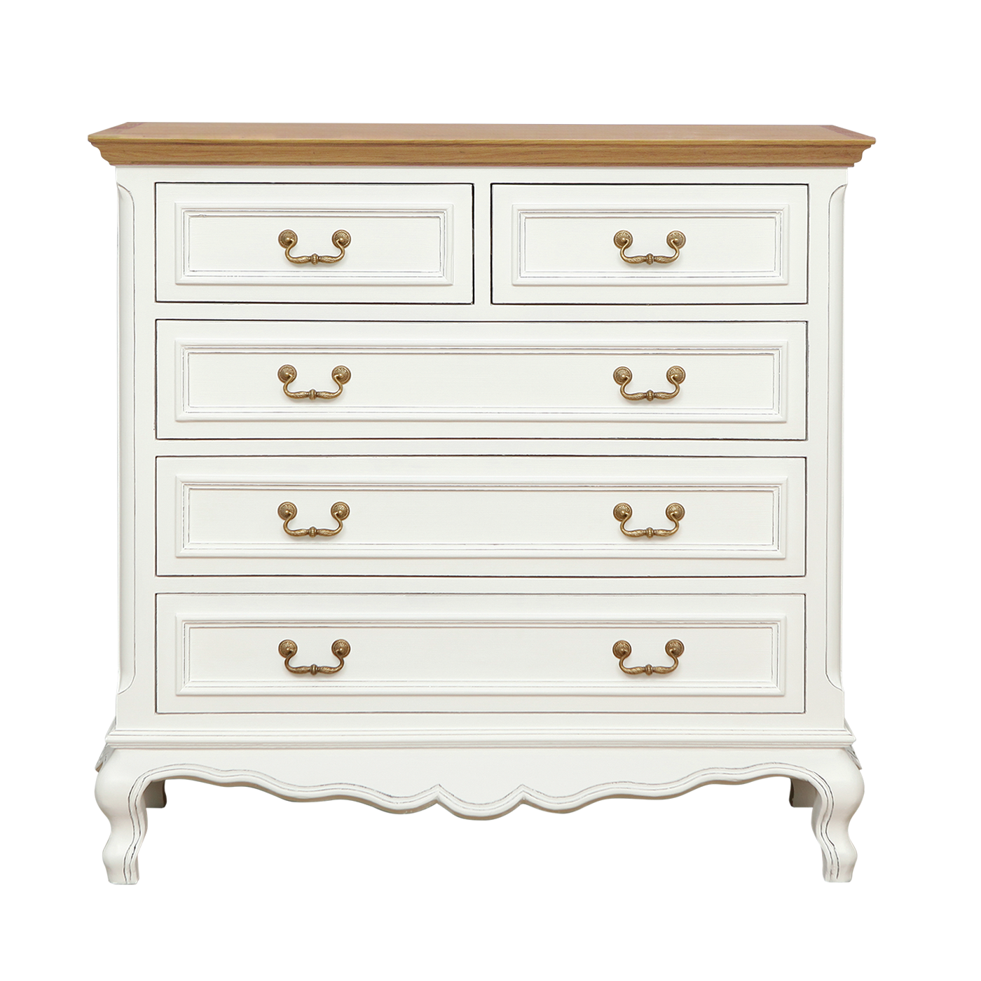 ALEXIA - Chest of drawers L100 x H98 - Brocante white and Natural oak