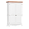 This mid-sized wardrobe offers extreme versatility, with the combination of shelves, drawers and hanging space. A place for everything! Crown molding and shaker style doors are further enhanced by the white painted finish with the natural oak top. A great contrasted and stylish wardrobe that you will enjoy to see everyday at home!
