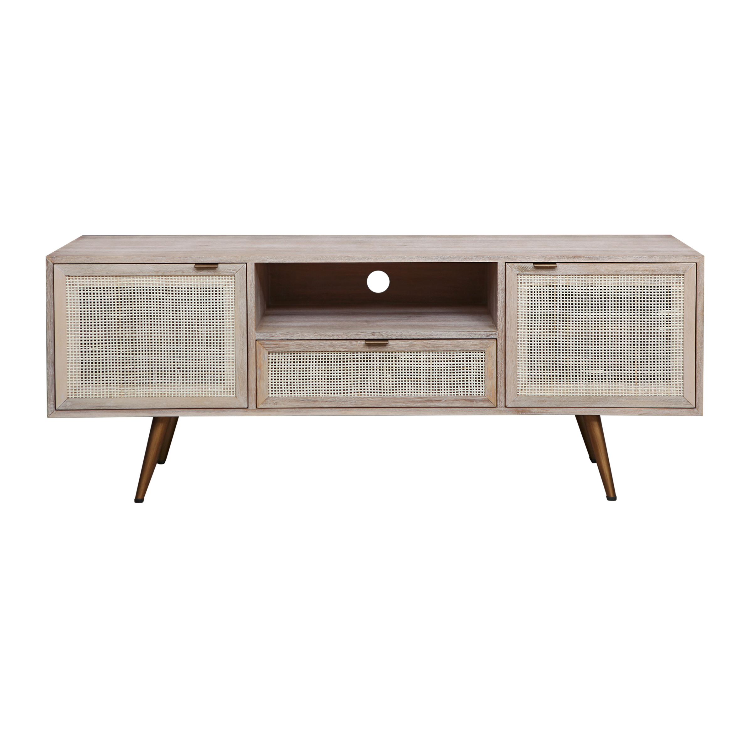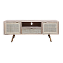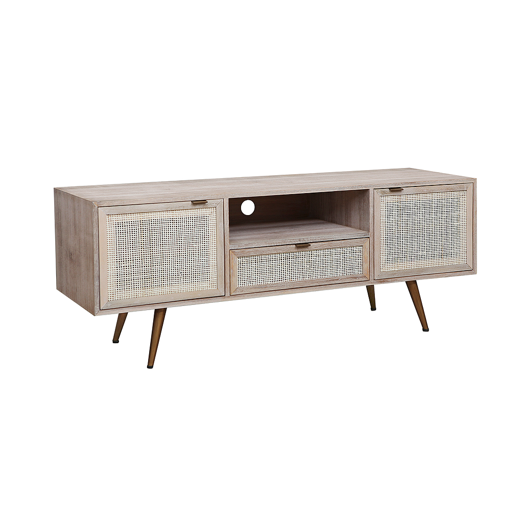 SPRING - TV Stand L140 - Whitened acacia, Natural cane and Vintage brass