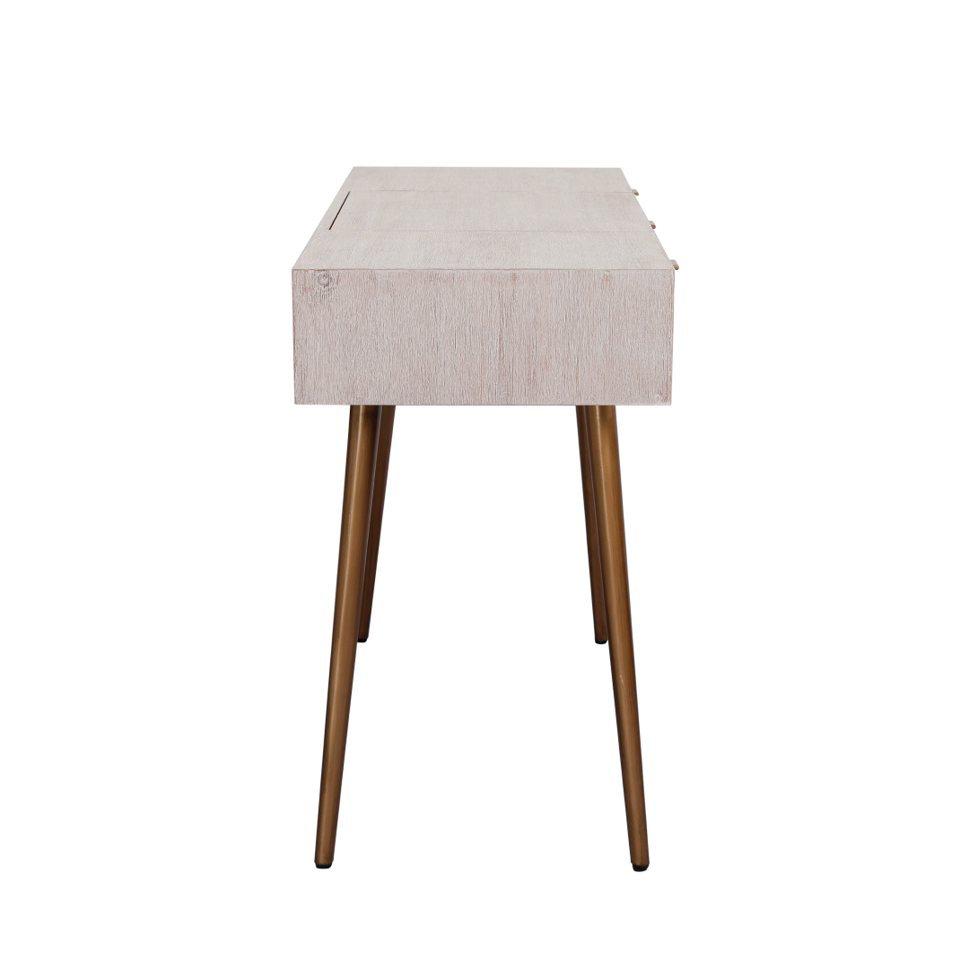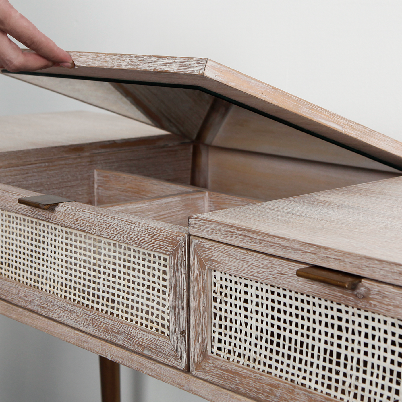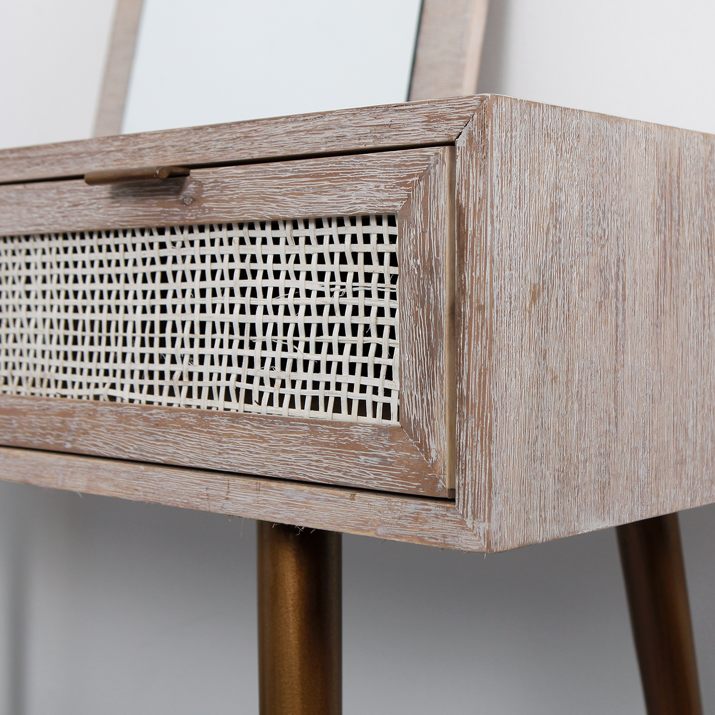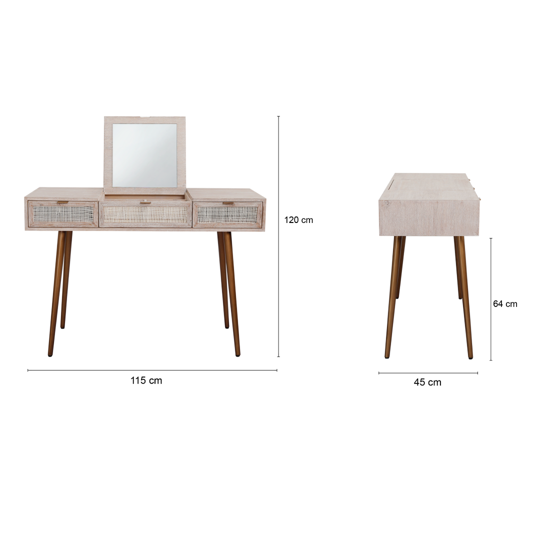 SPRING - Dressing table L115 x W45 - Whitened acacia, Natural cane Vintage brass
