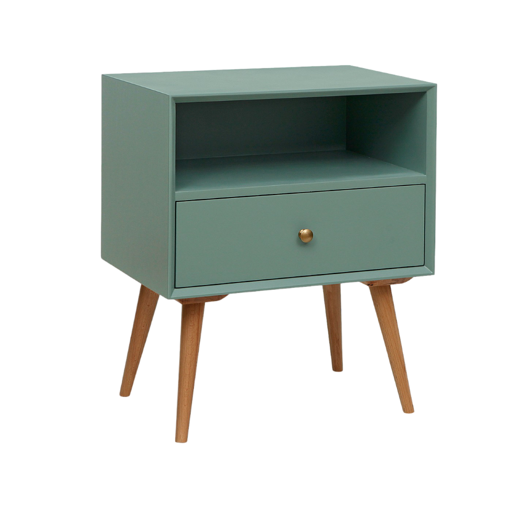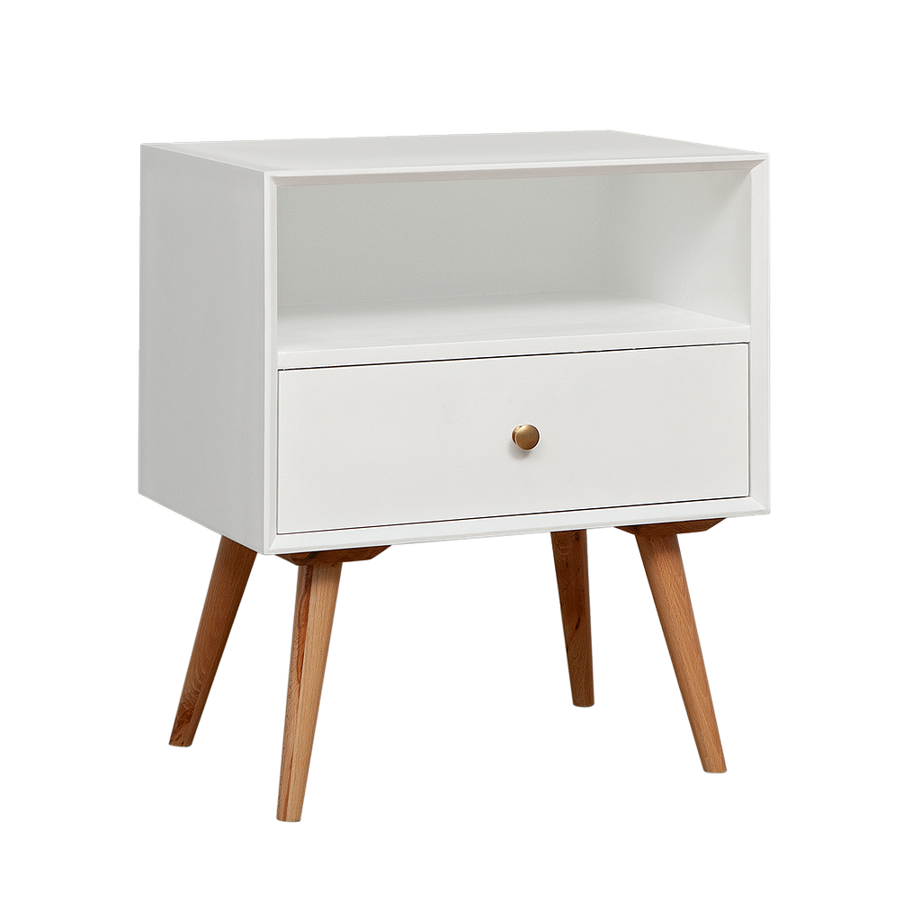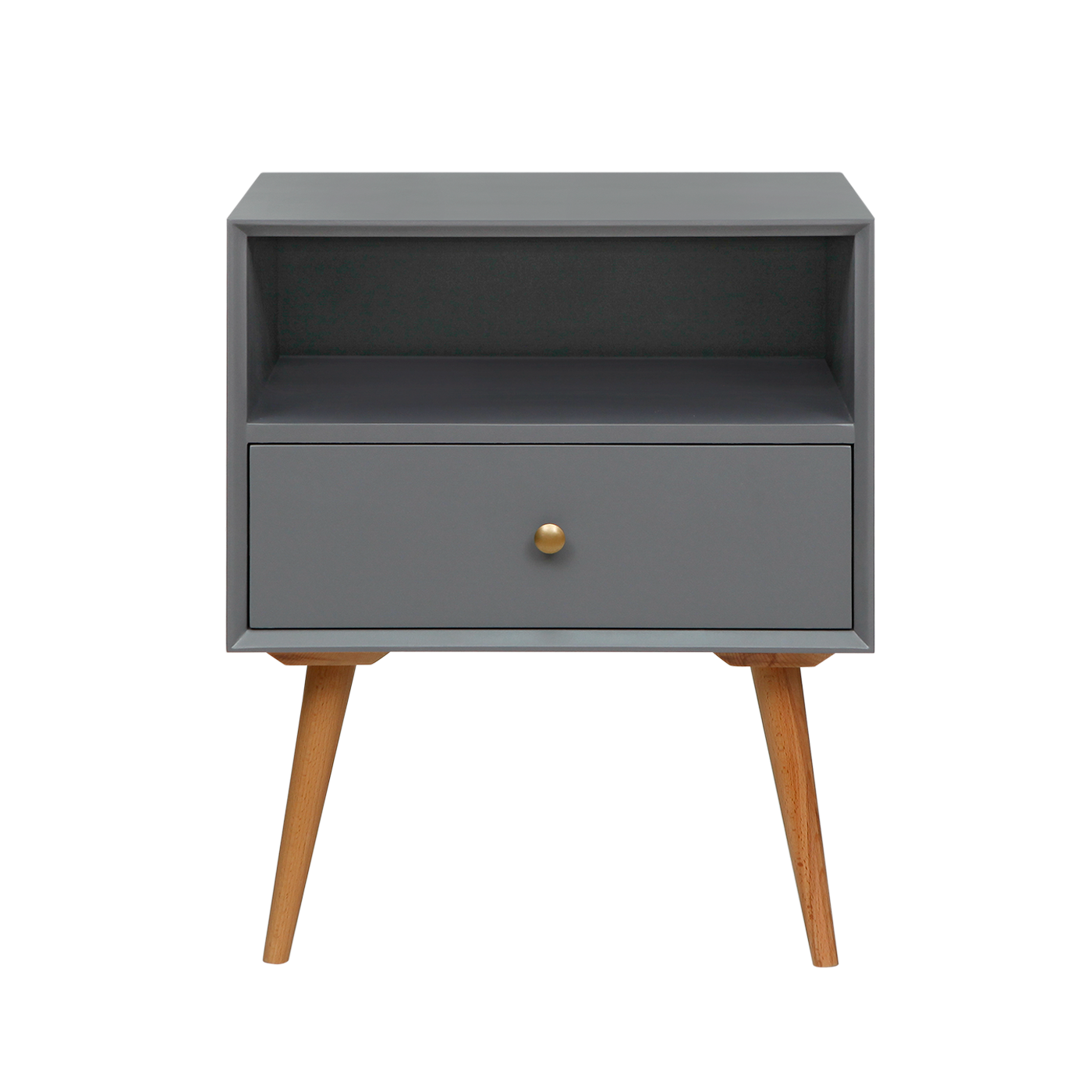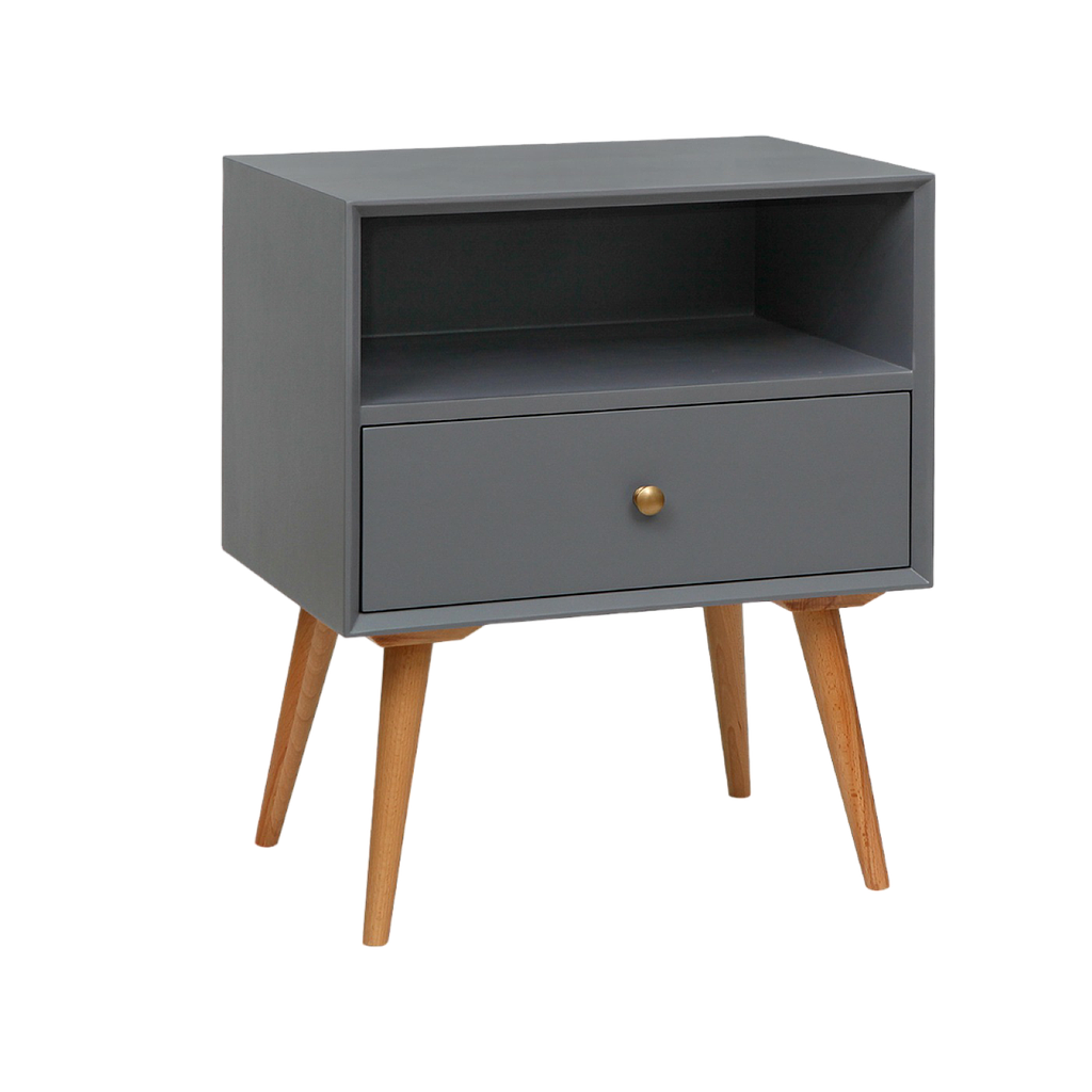Bring a contemporary charm to your bedroom with this stylish bedside unit. Featuring one pull-out drawers on smooth runners, you can keep all of your bedroom bits and pieces close by and in easy reach of your bed. The legs are crafted in beerch wood, whilst the clean pearl grey frame and drawer make a modern contrast.