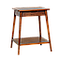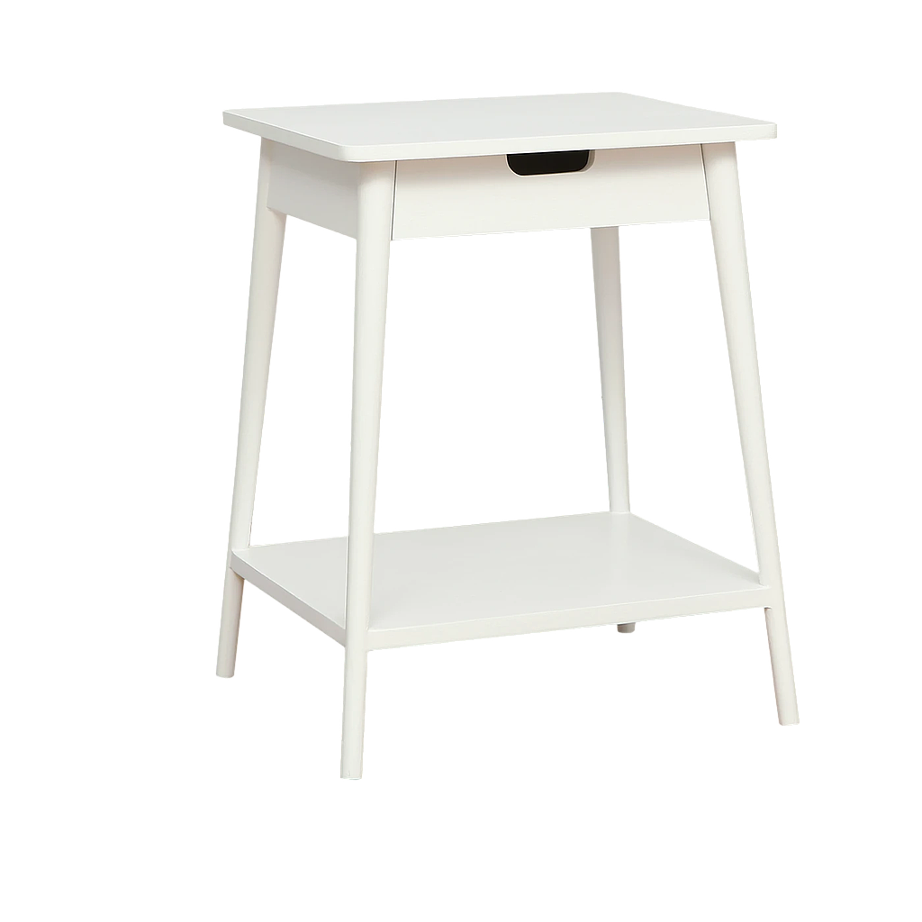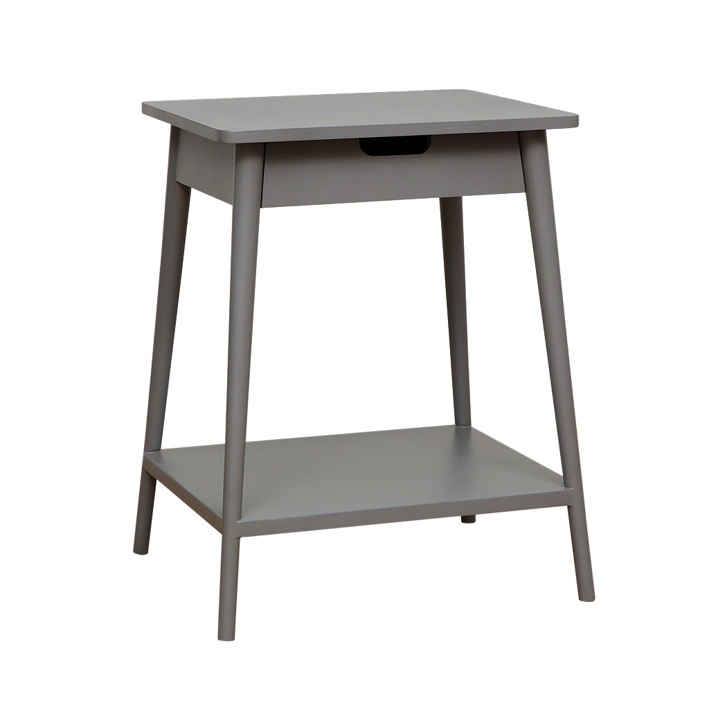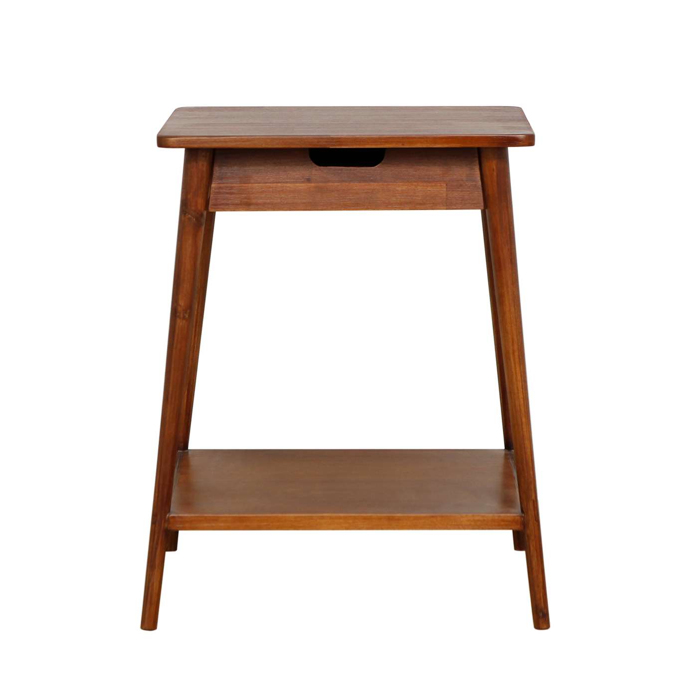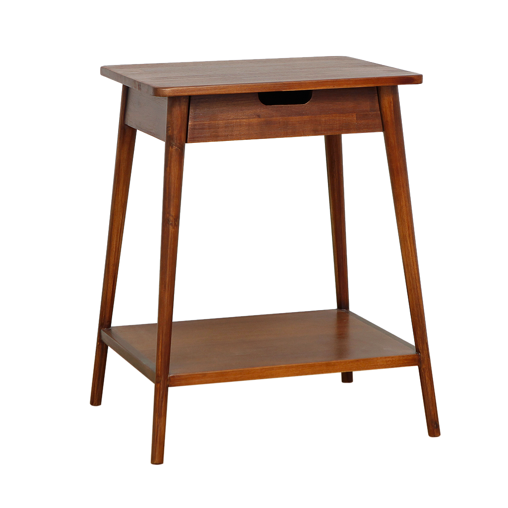Bring retro-modern flair to your bedroom with this mid-century nightstand! Crafted of acacia the ULYSSE Collection nightstand strikes a rectangular silhouette with rounded edges on four flared legs. The tray table top is great for corralling your alarm clock and phone charger, while a drawer and a shelf offer usuful storage place for bedside essentials.