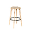 Pull the ALEV round stool right up to your kitchen island or table. We love the simplicity of material and clean classic look that makes this stool such an easy fit into your design scheme. Plus, the backless style means youre able to tuck it right under your table surface for space saving efficiency. It is made from solid acacia wood with a metal footrest bar and it is available in a variety of color combinations. Ideal for extra seating.