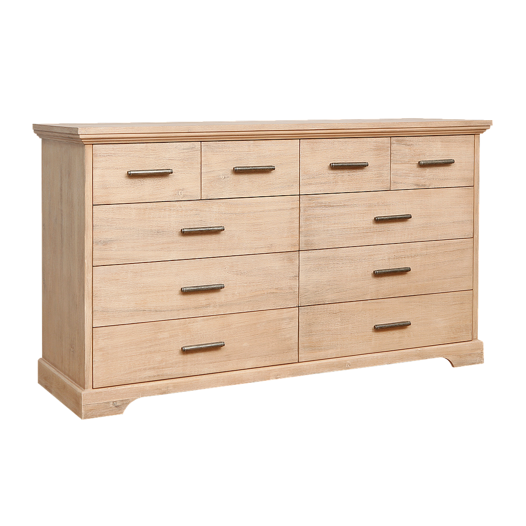 This stunning chest of drawers adds a note of timeless style to its surroundings. The classic design features a clean-lined silhouette , and ten drawers provide plenty of storage space for anything from clothing to media and more.