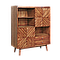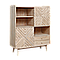 This stunning highboard is meant to make a decorative and practical addition to your home. The cabinet features has 3 open shelves, 2 drawers and 2 compartments with doors, providing ample storage space for keeping your various daily essentials well-organized and within easy reach. You can also place your favorite photos, decorations, or flowers on top of this sideboard to enrich your life. The unique doors design adds a touch of luxury and modern twist and elevate the furniture's character.
