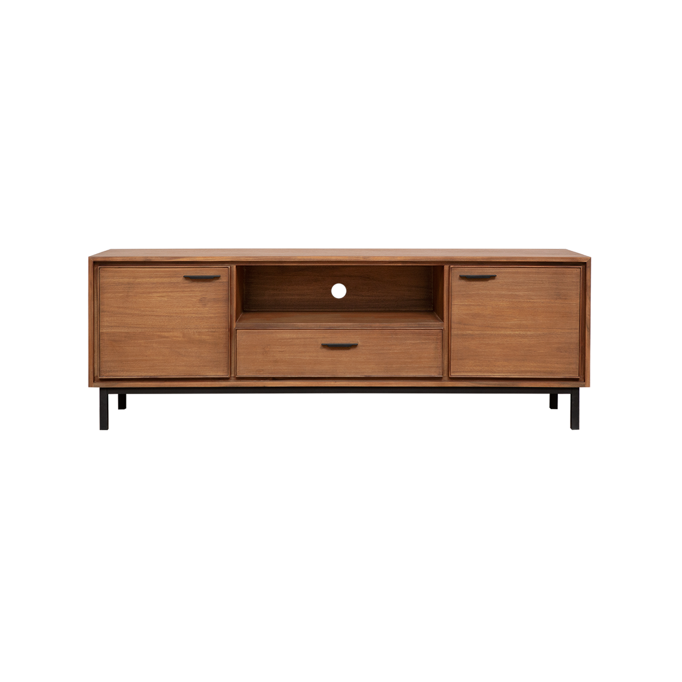 This modern and functional DANN Collection TV stand is designed to seamlessly fit into any living room. With clean lines and an elegant finish, it adds a touch of sophistication while providing practical storage space. At the back of the stand, discreet openings are designed for cable management, ensuring a clean and clutter-free setup. Featuring 1 niche, 1 large drawer and 2 doors, this TV stand is not only an aesthetic centerpiece in your living room but also a practical solution for organizing and storing your entertainment equipment.