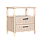 This stylish bedside table combines functionality with a modern design, featuring two fluted wood drawers that add texture and elegance. The fluted drawer fronts create a sleek, linear pattern, offering ample storage for personal items while enhancing the table's aesthetic. Above the drawers, an open niche provides additional space for easy access to books, electronics, or décor. The table stands on rounded legs, which give it a sturdy foundation and a soft, curved appearance. Crafted from high-quality wood, this bedside table complements a variety of interior styles, making it a perfect addition to any bedroom.