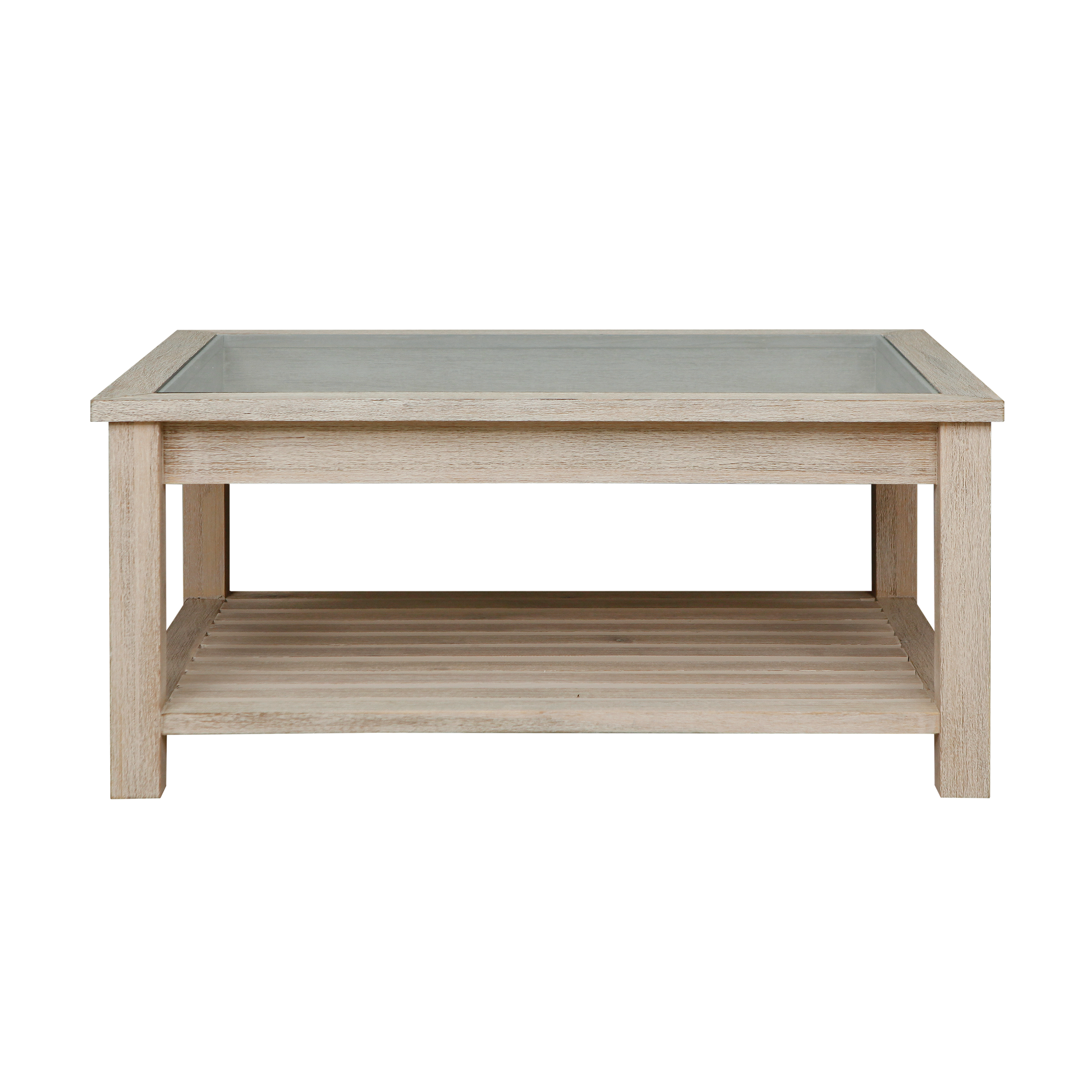 Complete your living room with this BOLTON Collection Coffee Table from Decosy Original Studio. Constructed of solid acacia this coffee table features a distressed glass top, and one lower wood shelf to house books, magazines, throws, extra pillows and more.