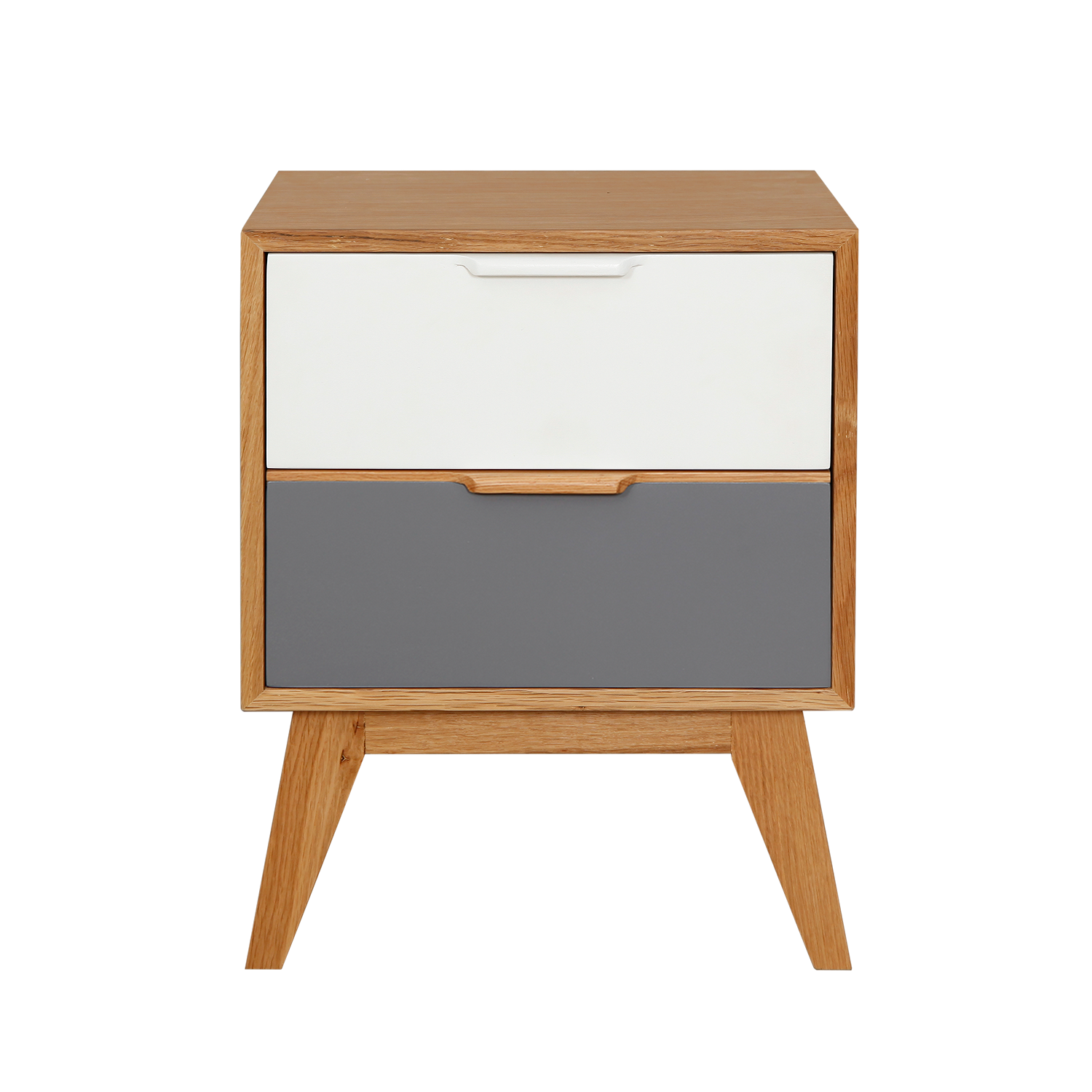 Organize and simplify your bedside clutter with this modern nightstand from Decosy Original design studio. Constructed of solid acacia with a wood base and four angled legs, this nightstand will provide ample storage space for books, phone chargers, TV remotes, jewelry and more. Place this nightstand next to your favorite chair in your living room or great room and it will prove equally as useful and adorable as a side table.