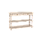 Brighten your entryway with the stylish and functional console table. This piece features two drawers and two shelves to store keys, mail, and more. Clean lines and a smooth brocante white and natural oak finish lend a contemporary look. The plus ? Its gold-tone metal knobs on the drawers and the natural wood top that give more look to this piece. Store books on the lower shelf and add the tabletop with decorations to give the even more style.
