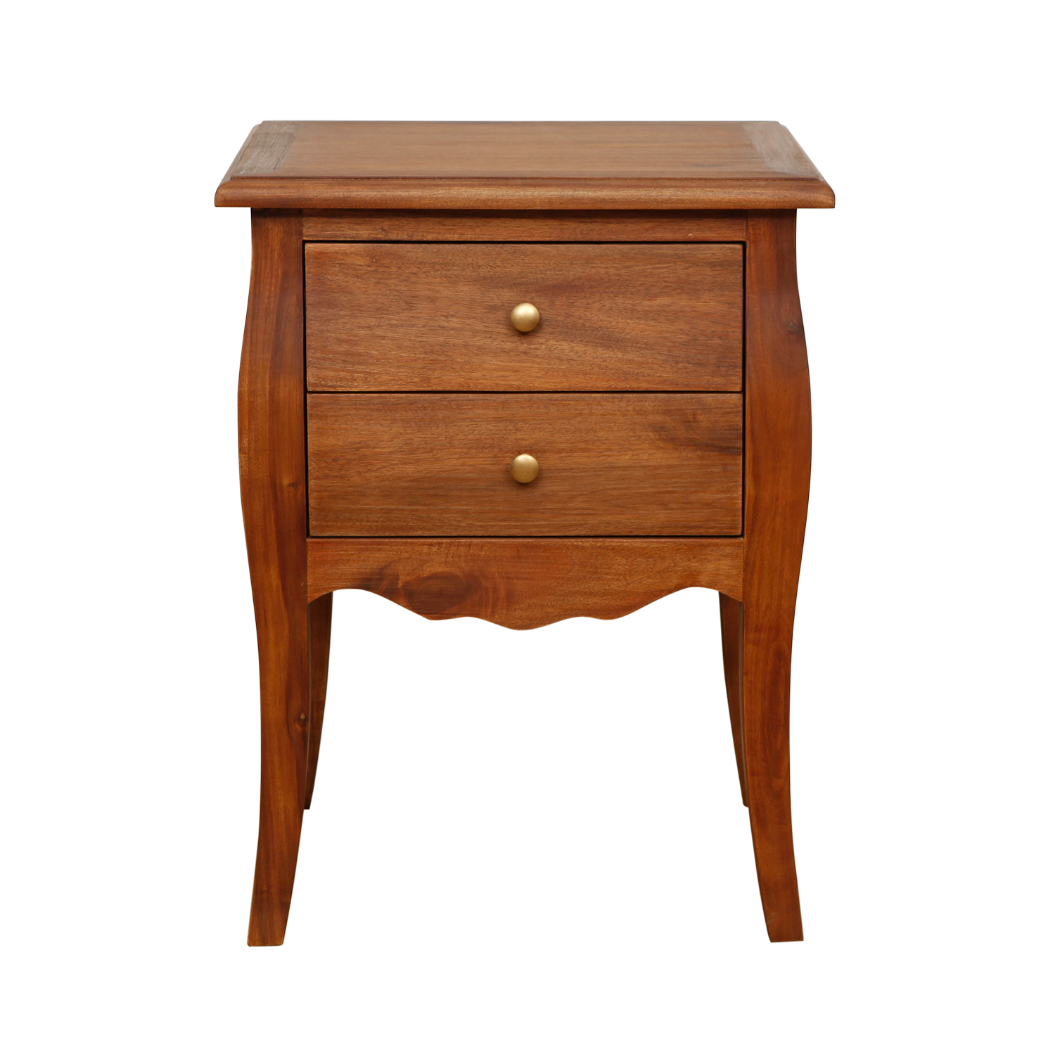 Elevate your bedroom decor with this FLORIE antique-style two-drawer nightstand by Decosy. Constructed with Acacia wood for enhanced durability, this nightstand sports a white finish and polished white drawers and legs for a charming French Country feel in your space.