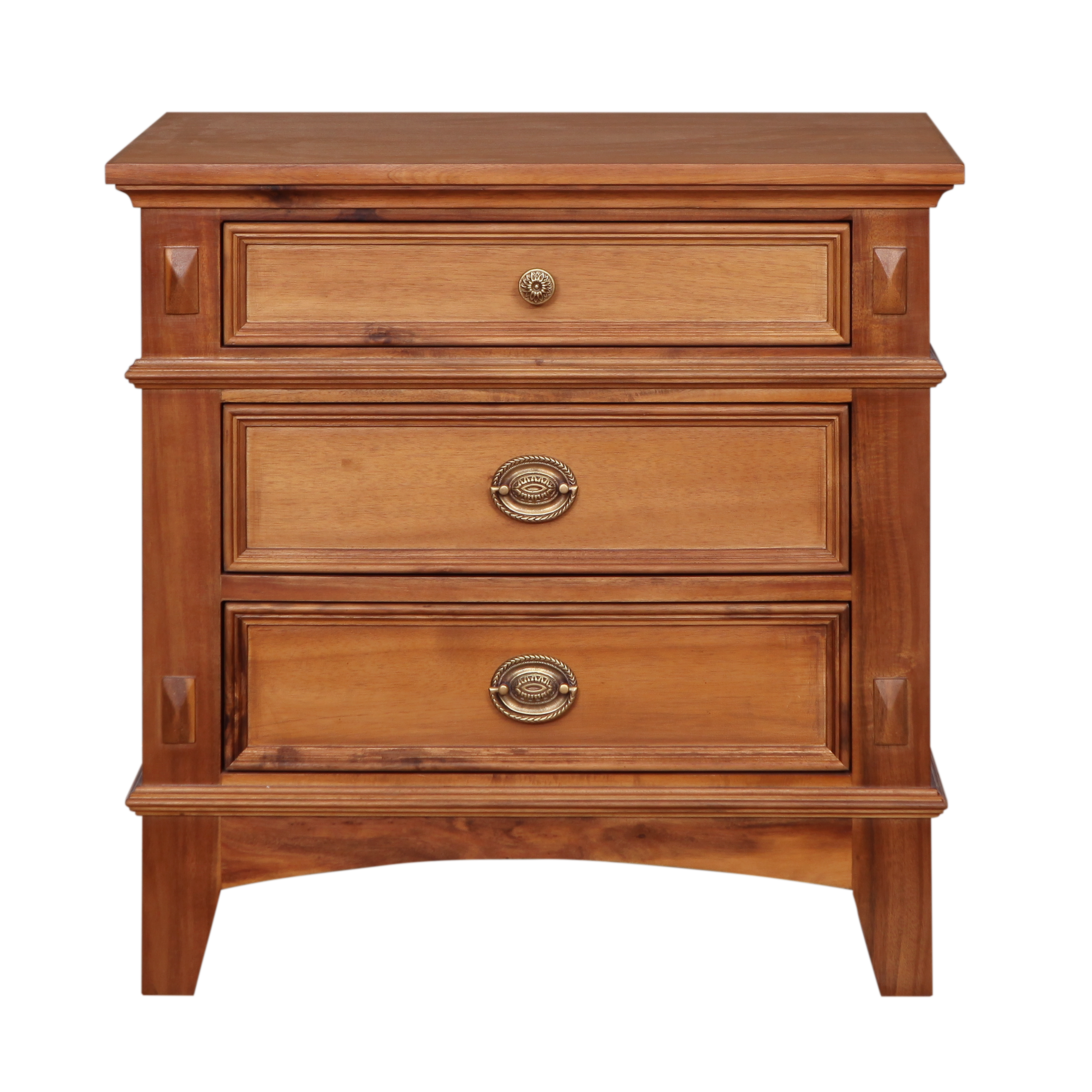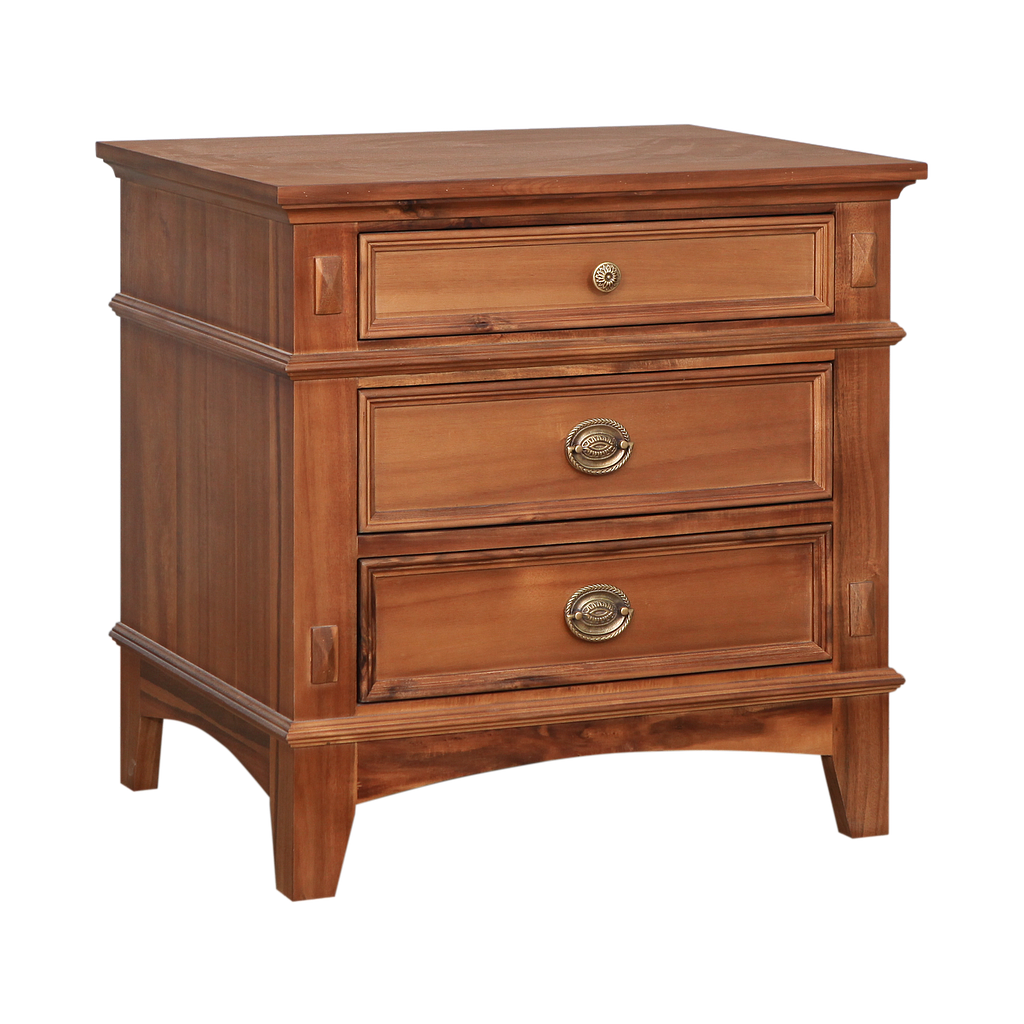 Update your bedroom in a sleek way with this solid wood nightstand. This nightstand is constructed with three drawers and is available vairous finishings. Layered panels on the three drawer fronts create a unique design element for visual interest and the rounded slim drawer pulls keep things sleek.