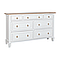 This large, seven-drawer chest of drawers is a stylish option for storing folded clothes and bedding in the bedroom, but it could serve just as well as a sideboard in the living room or dining area. It has three small drawers and four larger drawers beneath. It is made from acacia wood. Each drawer has a brass handle.