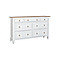 This large, seven-drawer chest of drawers is a stylish option for storing folded clothes and bedding in the bedroom, but it could serve just as well as a sideboard in the living room or dining area. It has three small drawers and four larger drawers beneath. It is made from acacia wood. Each drawer has a brass handle.
