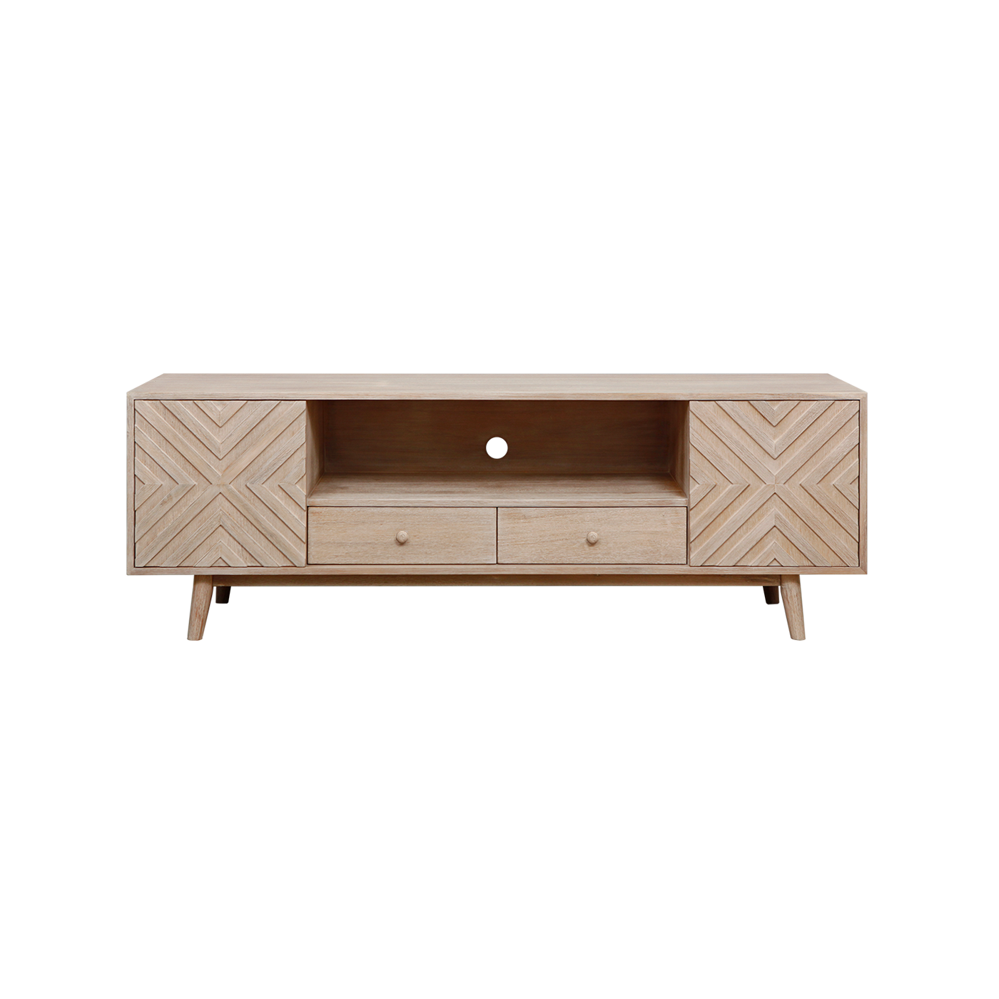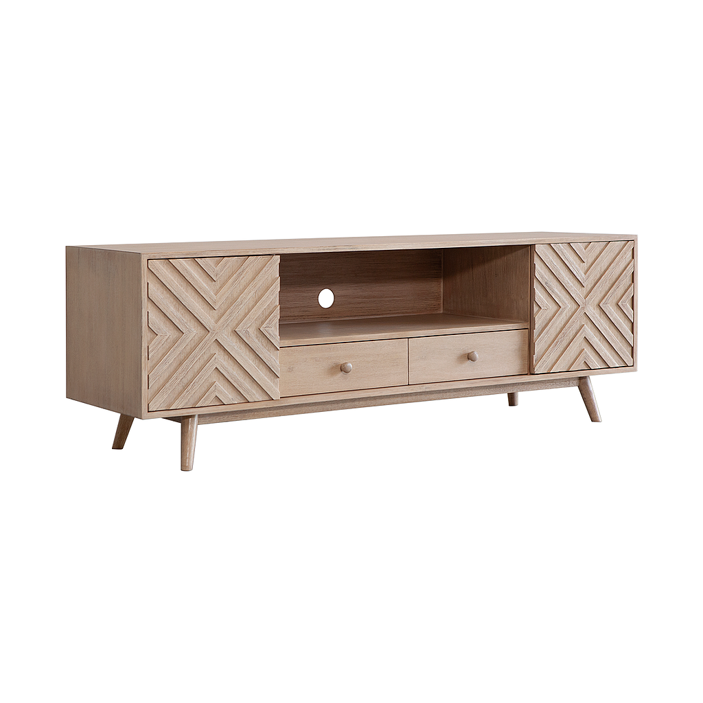 PORTO - TV stand L160 x H55 - Whitened acacia
