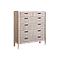 This sophisticated chest of drawers features a total of six drawers; four large drawers for ample storage and two smaller drawers on the upper part, perfect for organizing accessories or smaller items. The fluted wood drawer fronts add texture and a modern, linear design, elevating the piece's visual appeal. Each drawer offers generous space while maintaining a sleek, elegant look. The chest stands on rounded solid wood legs, providing stability and a soft, rounded aesthetic that complements the overall design. Crafted from high-quality wood, this chest combines style and functionality, making it a versatile addition to bedrooms or living spaces