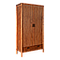 This elegant wardrobe combines style and practicality, featuring two fluted wood doors that add texture and a modern, refined look. Behind the doors, you'll find spacious shelving for folded clothes and essentials, along with a hanging rod for garments, offering versatile storage options. Below, a large drawer provides additional storage space for bulkier items or accessories. The wardrobe stands on rounded solid wood legs, which offer sturdy support and a soft, curved aesthetic that complements the overall design. Crafted from high-quality wood, this wardrobe blends timeless charm with functional organization, making it a stylish addition to any bedroom.